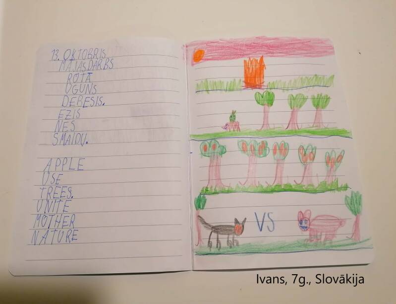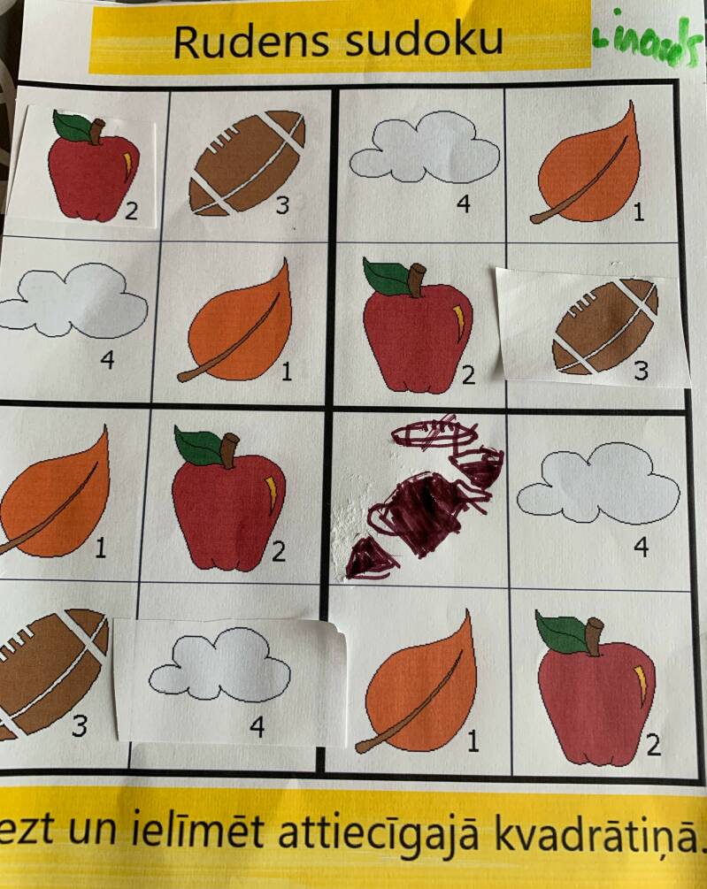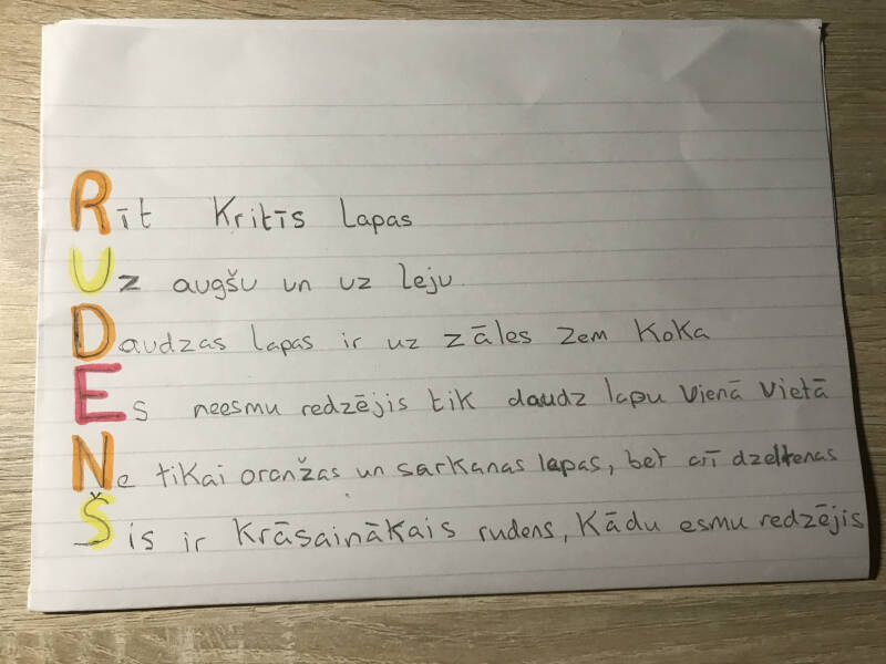 As my students are children with special needs, we wrote in Lithuanian and English, what autumn is for them. We perfectly integrated Lithuanian and English lessons.