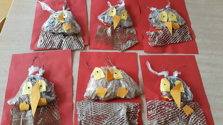 Children made " TEACHER" from different materials.